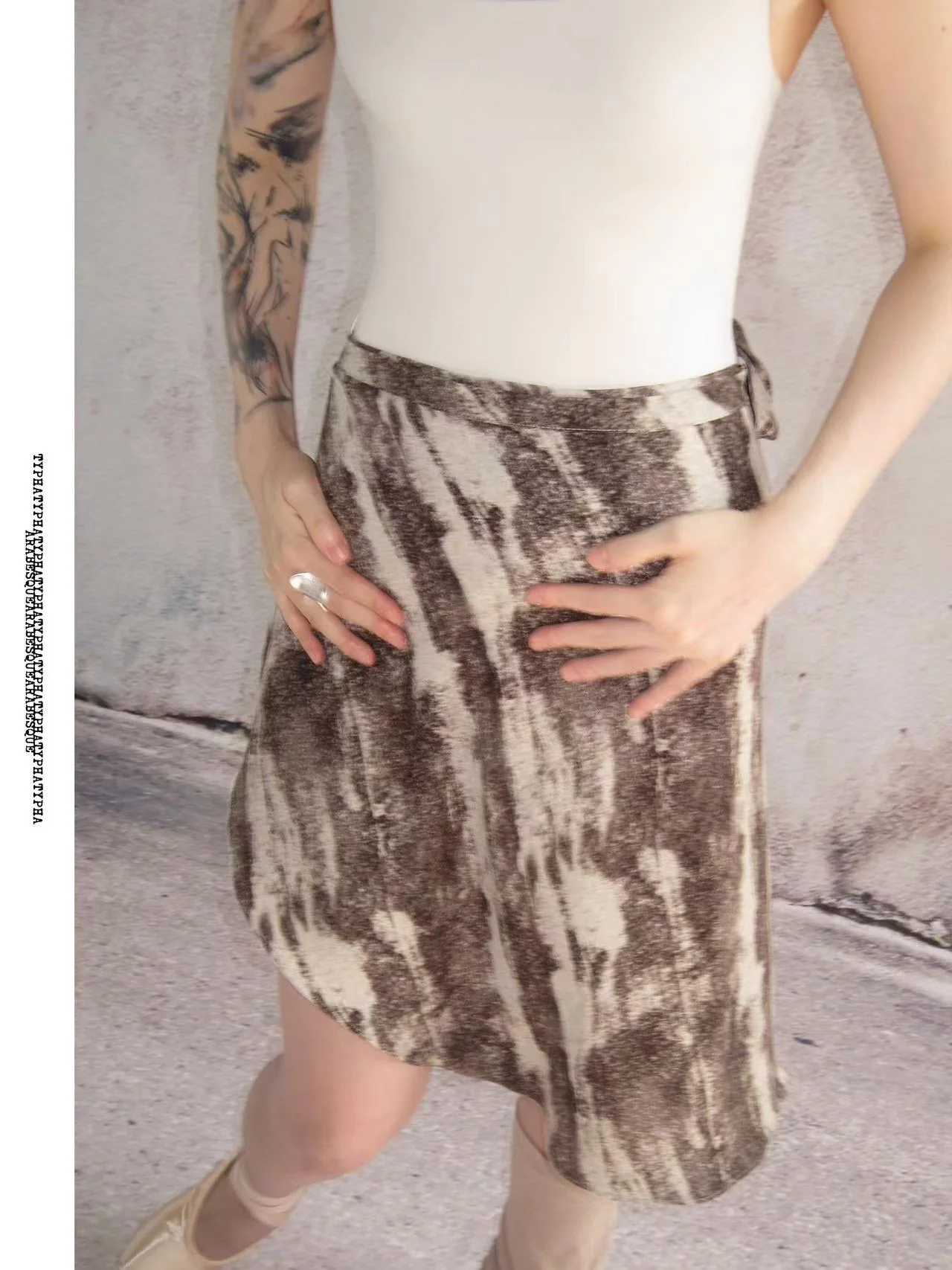 Ballet Skirt | Midi Wrap with Ink Faconne Pattern in Black & Brown