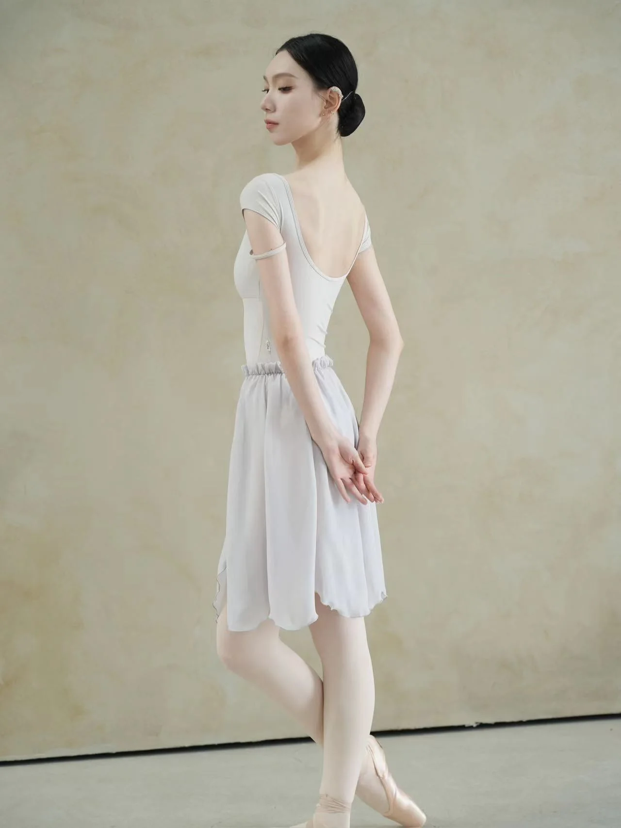 Ballet Skirt | Petal Design with Elastic Beam Waist in White & Light Gray