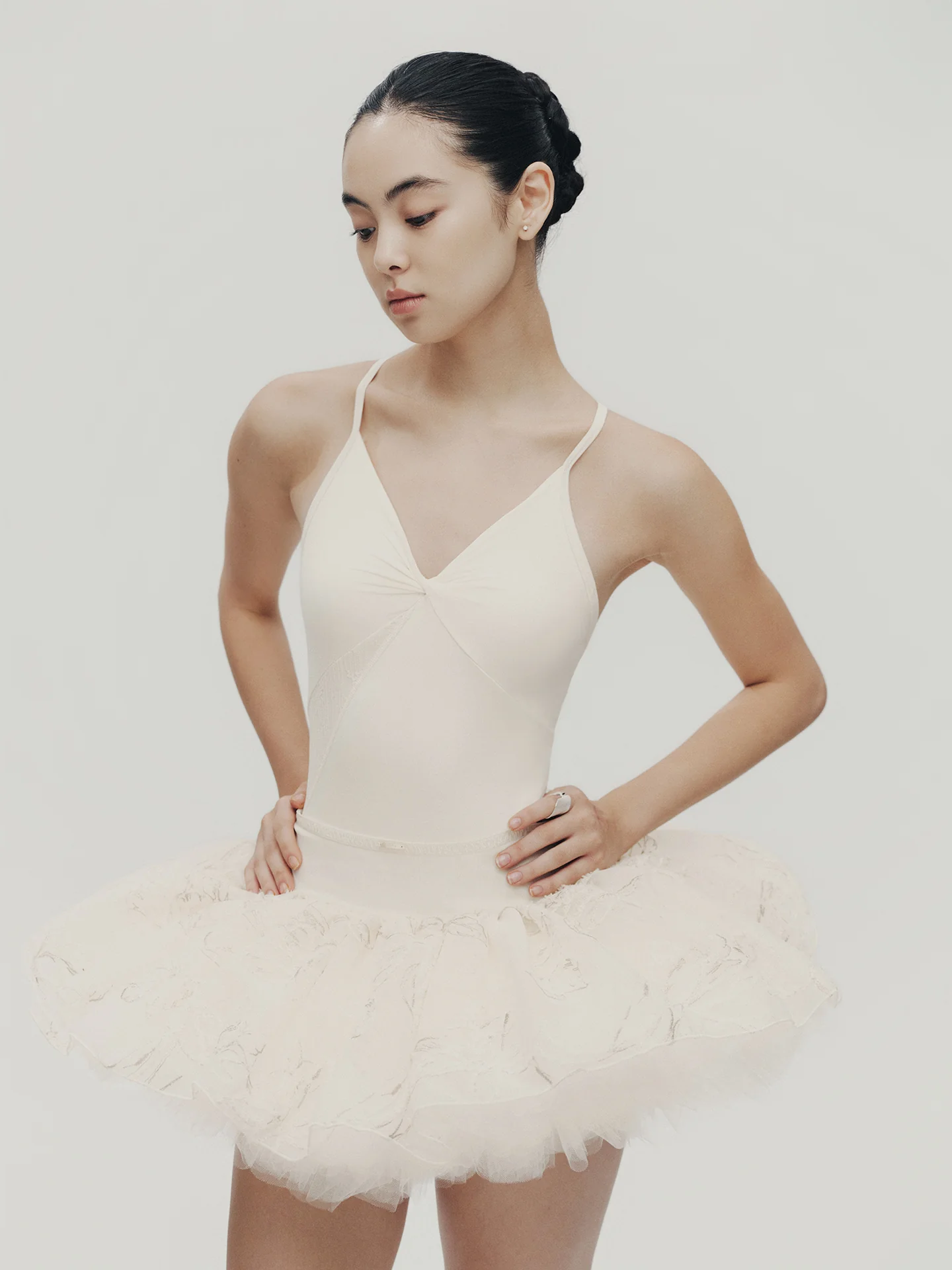 - 12 layers of soft, subtly sparkling mesh create a puffy "chou" silhouette.