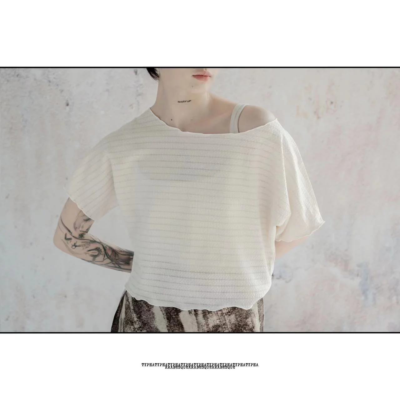 Dance Cropped Tee | Batwing Sleeve Textured Dance Top in Black/Cream